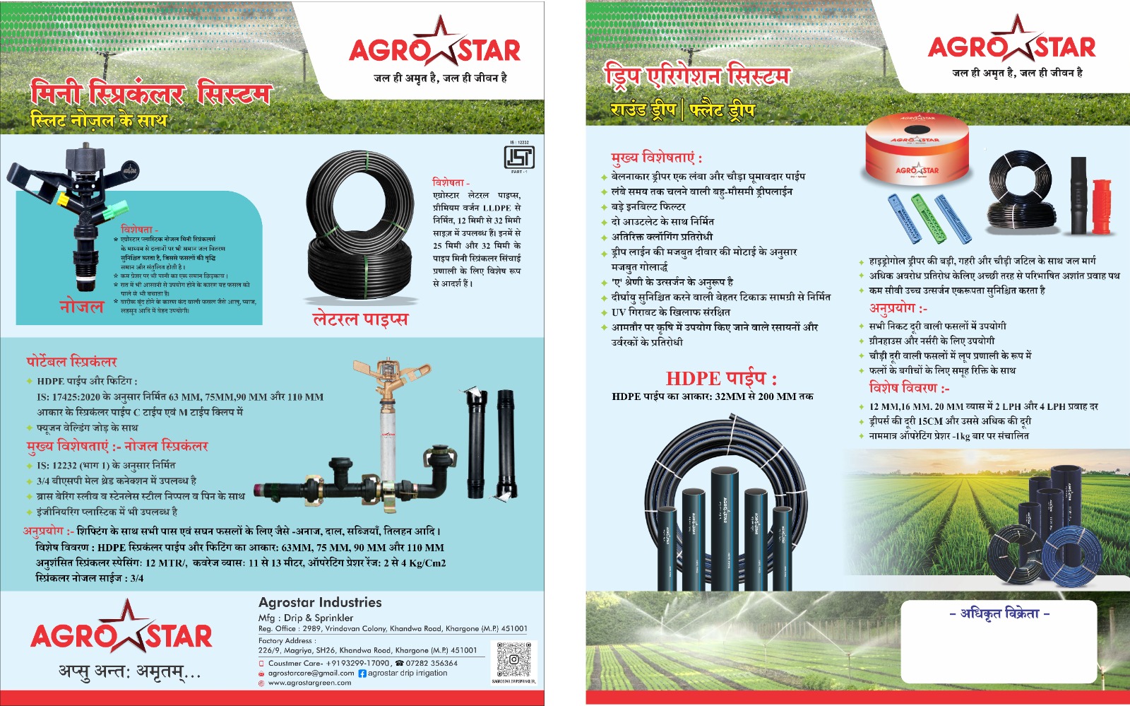 Agrostar Industries Pvt. Ltd., established in 2005, is a globally recognized leader in Drip Irrigation System, Sprinkler Irrigation System and Mini Sprinkler Irrigation System.